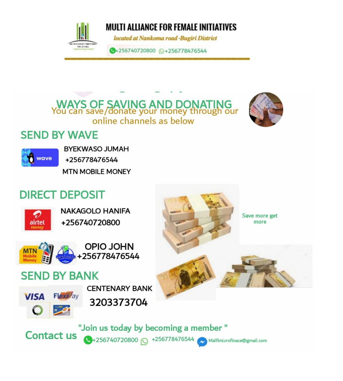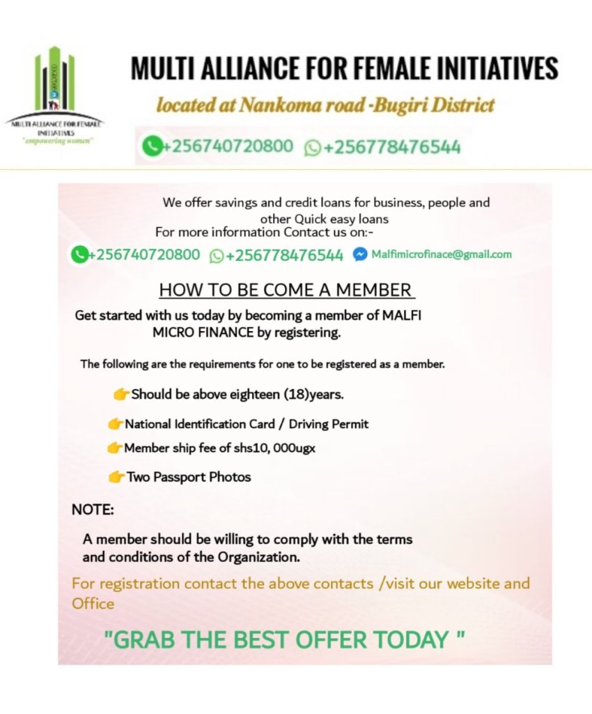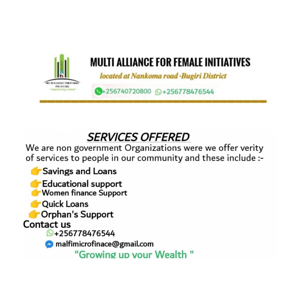 Multi Alliance For Female Intiative (MALFI) is a non government organization which volunteers to improve on life scale of people in Uganda especially women business, early childhood programs and many others.